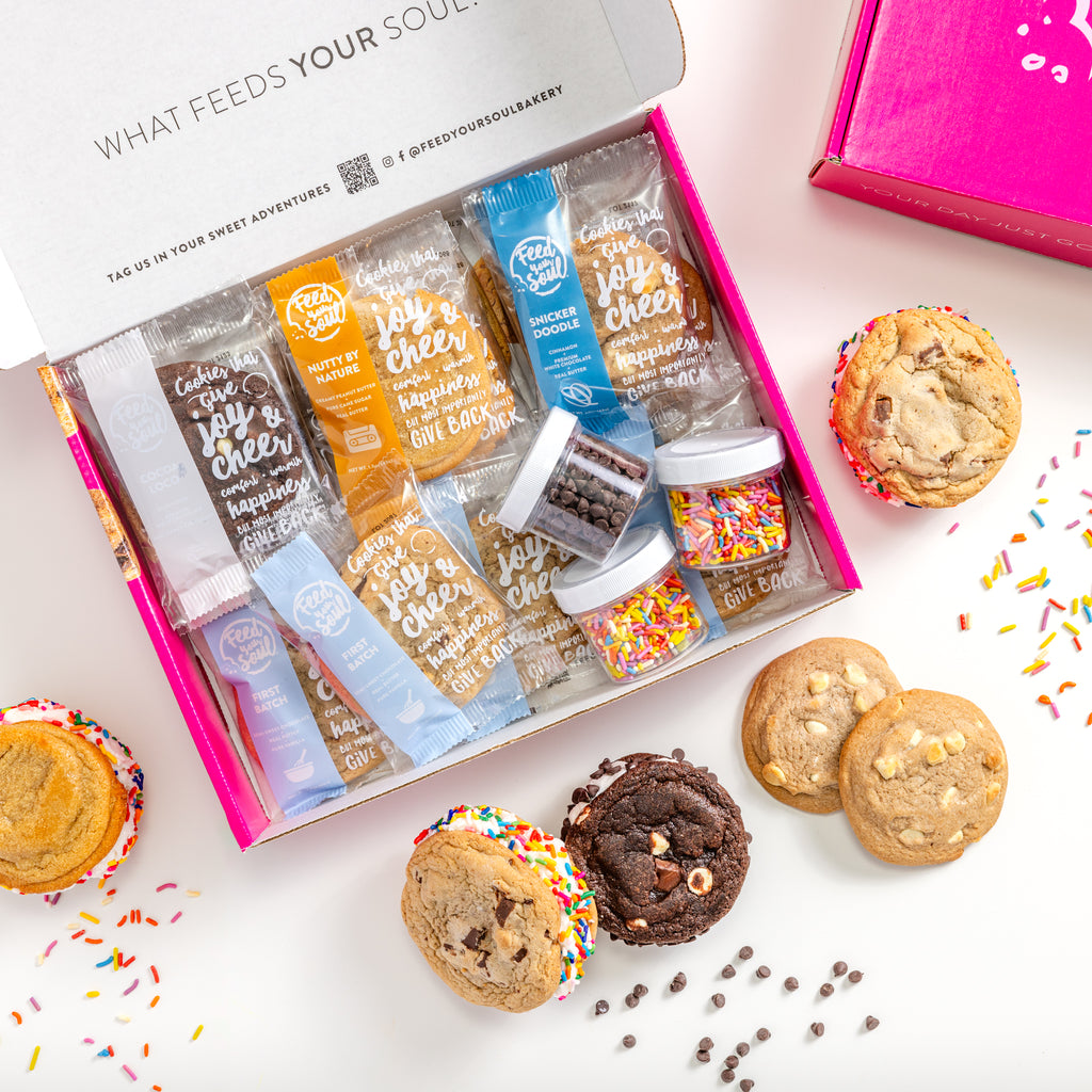 Each box contains 16 soft-baked, individually wrapped cookies (4 First Batch, 4 Snickerdoodle, 4 Nutty by Nature, 4 Cocoa Loco)